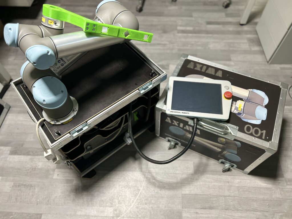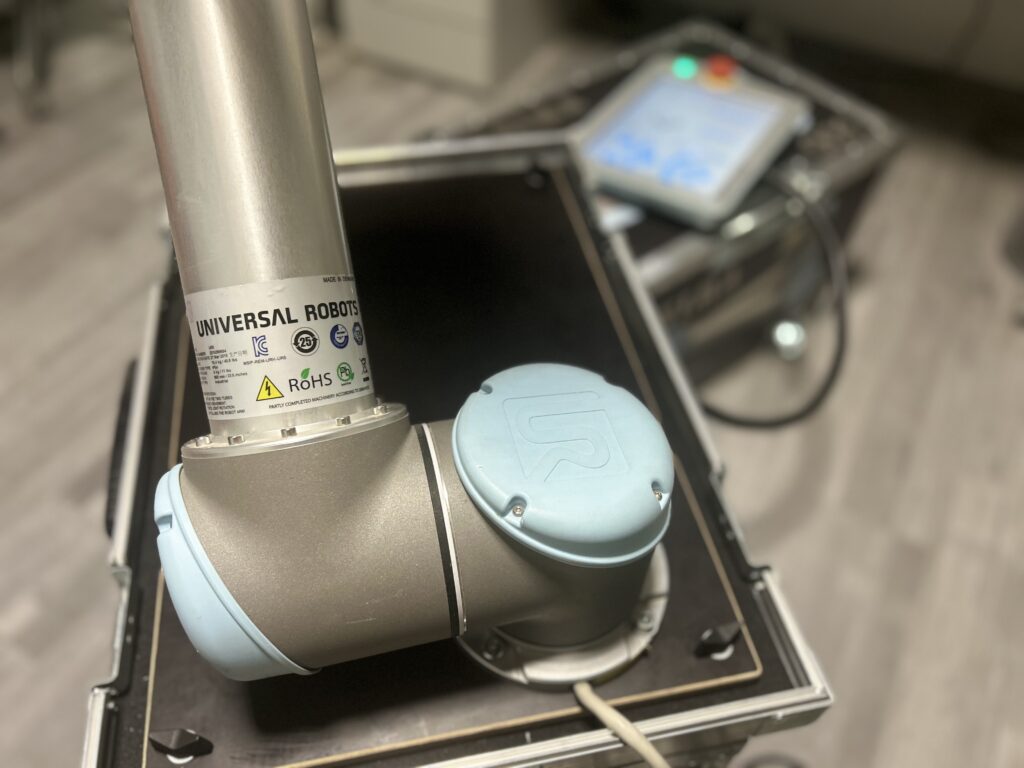 Do našej firmy sme zakúpili kolaboratívneho robota Universal Robots UR5 na testovanie a simuláciu priemyselných aplikácií. Tento robot nám umožňuje overovať nové procesy, programovanie aj integráciu automatizácie v bezpečnom prostredí. Vďaka jeho flexibilite a presnosti môžeme rýchlo vyvíjať a optimalizovať automatizačné riešenia pre našich zákazníkov. Investíciou do UR5 posilňujeme našu schopnosť inovovať a ponúkať moderné technológie v oblasti priemyselnej automatizácie.